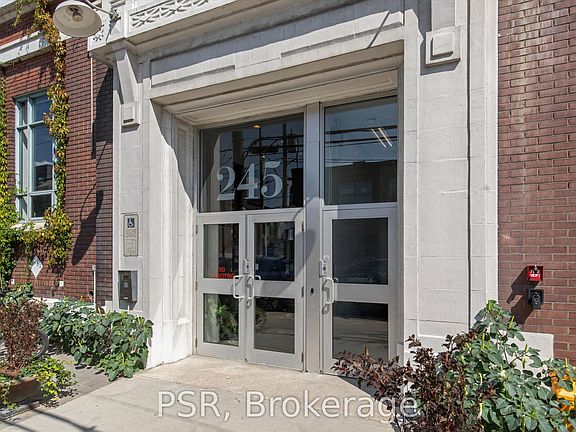 Stunning and rare 1,166 sq ft corner loft at the iconic Wrigley Lofts captures the best of authentic industrial design and modern living, with soaring 13'5" ceilings, original fluted mushroom columns, polished concrete floors and three walls of steel warehouse windows that flood the space with light and showcase permanently unobstructed west-facing skyline and sunset views. A chefs kitchen with stainless steel appliances, stone countertops and an ensuite washer/dryer adds convenience, while roller blinds provide a sleek finishing touch. Originally the Wrigley Chewing Gum factory (built 1916 converted in 1998), the heritage-registered building retains its character with a marble-clad lobby, preserved industrial details and three elevators including two oversized freight. Commercial live/work zoning offers endless flexibility-ideal for those seeking a dramatic private residence, creative studio, gallery space, or even an office making this loft as versatile as it is beautiful. With parking included and a coveted Leslieville location just steps to Queen Streets shops, cafés, restaurants, parks, TTC streetcar and the upcoming Ontario Line, this loft is as practical as it is iconic.