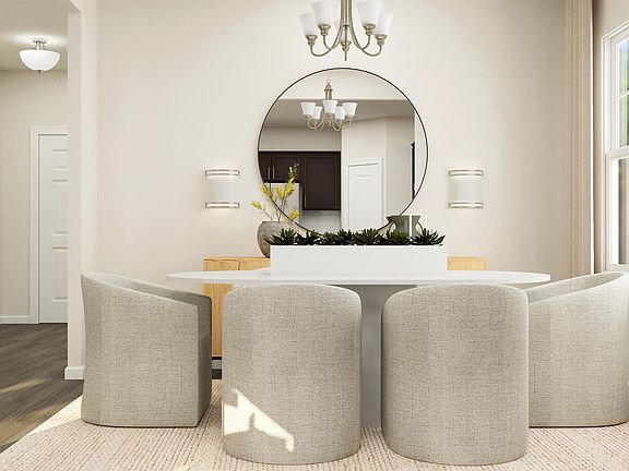 The Madison is a flexible four-bedroom home which features a study at the front of home & a bedroom with a full bath at the rear of the home. A separate dining room with trey ceiling allows the kitchen to face the family room & remain a very open concept plan. The second floor features a large loft for all flex space needs. The primary suite includes a trey ceiling with a large closet as well as full bath that features double sinks. Upcoming community amenities include pocket park, swing-set, dog park & a connection to a greenway trail.
