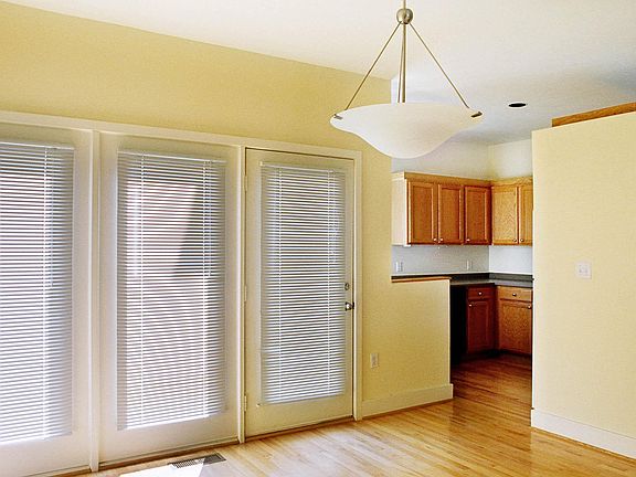 This spacious townhouse boasts high ceilings, hardwood maple floors in a light-filled living room, dining room and kitchen; a gas fireplace; a private deck; and an open kitchen with refrigerator, range, disposal, built-in microwave, and dishwasher. Upstairs, there are two bedrooms, one large bathroom, a washer and dryer, and ample closet space. The master bedroom includes two large closets, one of which is a walk-in closet. Downstairs, there is a den/office, a second full bathroom, and direct access to the garage. The stairs, bedrooms and den all feature wall-to-wall Berber carpeting. The townhouses also feature central heat/air conditioning and an alarm system. Each Alder Townhouse includes private parking space for two cars, one in a remote-controlled garage and the other in a carport. Resident pay for gas, electric, water and sewage. One garage parking space, one covered parking space included in rent.