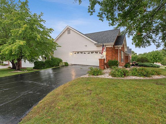 Enjoy single family living in beautiful Whitmoor with grass maintenance, snow removal, in-ground irrigation system managed by cluster home association. Brick front ranch home, Forest model, four bedrooms, 2 full baths, one half bath. Tiled entry opens to spacious formal dining room w/ chair rail and vaulted great room with wall of windows. Kitchen is also vaulted with two skylights, 42 inch white cabinetry, breakfast bar/island. pantry, planning deck, separate breakfast room opening to deck. Primary bedroom-bay window, his/hers closets, luxury bath w/ dual vanities, separate whirlpool/shower, water closet. Half bath w/ pedestal sink and MFL complete main level. Walk-out lower level has rec/family room w/ custom wet bar, three bedrooms, full bath, cedar closet, storage area. Also included are plantation shutters, decorative pillars, zoned HVAC, two gas fireplaces, covered soffits/fascia, patio. Sellers prefer for sale to be as-is but may offer an allowance for windows w/ broken seals.