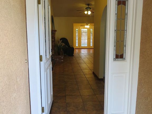 Front yard is tiered with drought resistant greenery for fresh clean look.long covered porch has white railing leading to freshly painted door.Inside tiled floors cover everything except 3 bedrooms & sunken living room which have new carpet.New dual pane windows ,stucco,paint '12.Kitchen features moveable island for dining & storage plus extra cabinet on side of fridge & upper & lower cabinets on east wall.New ss dw'15, fridge, sealed burner range:lots of tiled counters.Open to family rm with brick fireplace,mantle &hearth;ceiling fan.Open to permitted(habitable space)patio rm w/ 2 fans that has pass through to kitchen & french dr to backyd.Both bathrms remodeled w/tiled floors & showers.2 guest bdrms have chair rail & pleated shades.Mstr suite has walkin closet,recessed shelving,fan.Lots of hall storage.Backys shaded by tree& oleanders; roses!Block wall on south.RV access paved in front & behind gate.Water heater '05.Wood laminate blinds