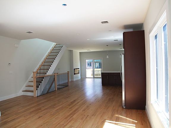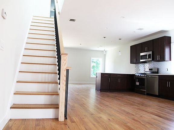 Spectacular modern town-home w/ NYC views. The unique duplex offers style & space (2800 sq ft) 3 bedrooms/ 2 full baths/ 2 half baths. The open concept flows between the living room/ dining room and kitchen. The designer kitchen features quartz counter-tops and SS Frigidaire Gallery Appliances. Highest quality red oak wood floors with natural finish throughout the home, Pella windows, Washer/Dryer, ample storage and closet space. Bus to NYC at the corner.