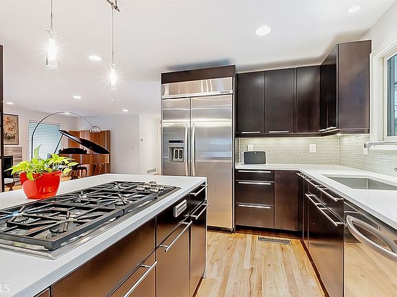 Stunning, fully renovated mid-century modern in sought-after Sandy Springs. Desirable open concept floor plan with designer-selected neutral colors and gleaming hardwoods throughout the main level. Chefs Kitchen with abundant cabinetry package with integrated pot drawers and roll-out shelving units, quartz countertops throughout, and upgraded stainless steel appliance package. Enjoy the separate Family & Living Rooms both with tons of natural light and individual fireplaces. The Dining Room provides direct access to the oversized rear patio. Expansive Master Suite offers custom His & Hers closets, exquisite Master Spa Bath including double vanities, separate shower, and jetted tub. Two additional spacious Guest Bedrooms and Guest Bathroom also on the main level. Finished Basement includes a private 4th Bedroom perfect for a Teen or Home Office, a large Flex Room & Storage Closet. Hard to find flat, fenced-in backyard with plentiful areas for outdoor seating between the patio & deck, convenient storage shed and theres even room for a pool. The Home has been meticulously maintained and is truly move-in ready. Sellers to provide (1) year 2-10 Home Warranty