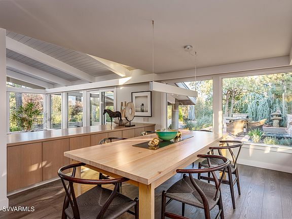 This immaculately remodeled West Sedona uber-private estate on acreage is a rare find. Over the top high-end rebuild of a vintage Mid Century home in an equestrian neighborhood with 3.5 ac and room for guesthouse/casita. Designed by Sedona's own Don Woods, this home features a large entertaining space surrounded by glass to foster a ''treehouse with views'' aesthetic. Recent complete remodel was done with modern styling and a discerning eye for detail. Extensive outdoor living space expands the livability of the home and encourages patio relaxation and dining in Sedona's four mild seasons. Massive 37' RV garage/studio was recently added, making an ideal Sprinter Van/car collection possible.