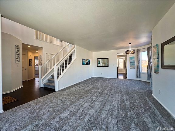 Very clean and updated two-story, three car garage home in the Founders Village neighborhood of Castle Rock. There is almost 2,200sf of finished, above grade living space in this 2,906sf home (unfinished basement). The main level features newly finished hardwood floors in the entry, large open staircase flanked by the formal living and dining rooms and then laundry, guest room, 3/4 bath and garage entry. On the back of the main level, there is a large family room with a two-story vaulted ceiling open to the kitchen and fully fenced backyard with large concrete patio. Upstairs you will find a large Primary Suite complete with a double vanity, large soaking tub, glass surround shower and walk-in closet. There are also two more bedrooms divided by a full bath. The basement has multiple egress windows and a plumbing rough-in, ready for finishing.