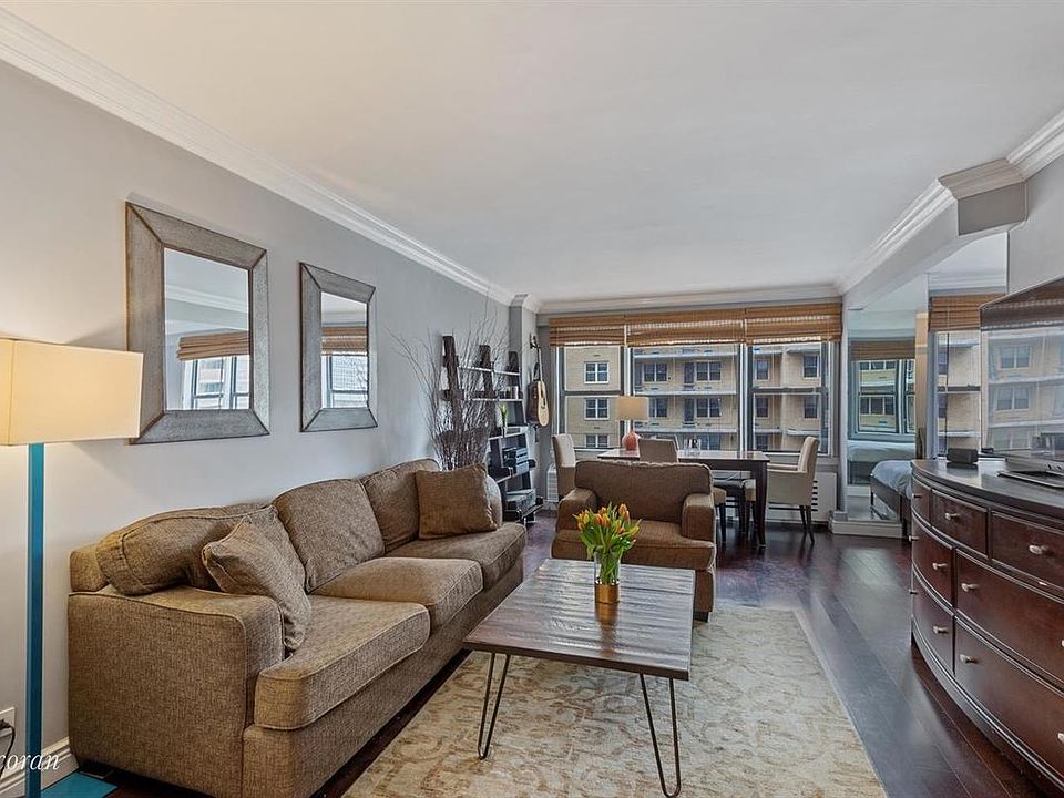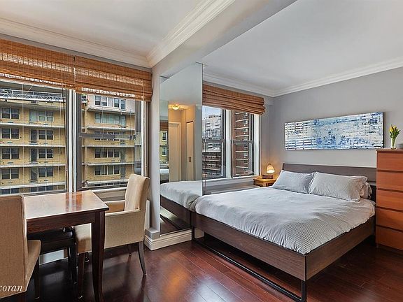 Eastern-facing windows run the width of this beautifully renovated and well-maintained alcove studio, creating a bright and airy feeling as soon as you enter. The oversized kitchen boasts stainless steel appliances, including a dishwasher, and abundant storage and counter space, sure to delight any chef at heart. The breakfast bar flows seamlessly into the generous living and dining area, offering ample entertaining space for guests. The spacious alcove can easily be converted into a separate bedroom and leads to the elegant and modern bathroom. Other highlights include hardwood floors throughout and plentiful closet space. Built in 1963, the 16-story Tracy Towers features an elegant lobby, newly installed state of the art elevators and washer/dryer units in the central laundry room, and a great staff with 24-hour doorman, porter, and live-in resident manager. Other attractive amenities include through wall air conditioning, bike and storage rooms, and one of the loveliest rooftop gardens in NYC that is beautifully landscaped and complete with awe inspiring views of landmarks and the Empire State Building. The location is convenient to local shops, restaurants, and services, as well as Madison Square Park, the East Side River path, Trader Joe's, Fairway, AMC movie theater, and public transportation. Pets and pied-a-terres are permitted. Subletting is permitted after two years of ownership for two years and a monthly fee totaling 25% of the maintenance.