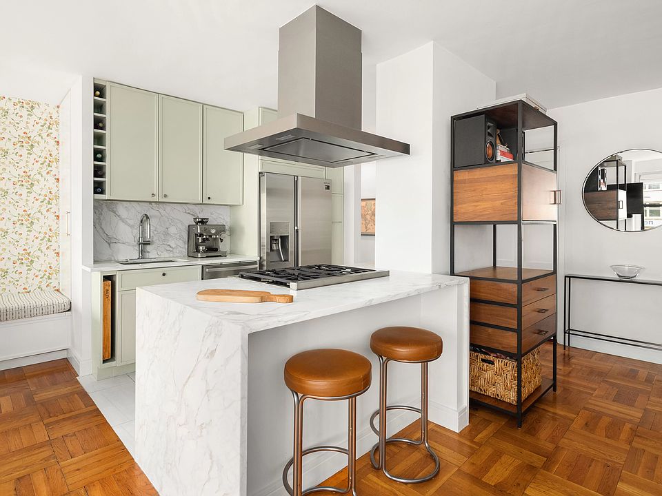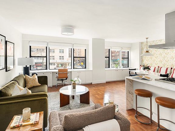 This one bedroom residence is located on the second floor of the coveted Tracy Towers in Kips Bay. With southeastern exposures, this residence is sun-drenched, bright and airy. Recently renovated and in mint condition, this open floor plan is the perfect space to entertain! The gracious foyer, flanked by beautifully refinished custom closets, leads into a large living space with an expansive wall of east-facing windows. Nestled below the windows are pristine custom millwork built-ins, featuring a special space to accommodate the perfect work-from-home set up. The meticulously renovated chef's kitchen features sleek marble countertops and backsplash, a Thermador gas range and hood, smart Samsung refrigerator, and Bosch dishwasher. Adjacent to the kitchen is a beautifully designed custom banquet which doubles as an oversized dining alcove. The simple yet sophisticated windowed bathroom offers a tub and shower combination with chic contemporary fixtures. Through-the-wall air-conditioning ensures year-round comfort in this perfectly designed home. Tracy Towers is a full service post-war co-op where residents enjoy a full time doorman, laundry room, live-in super, roof deck, and storage for rent. This home is steps away from Gramercy and with close proximity to NoMad, Flatiron, Chelsea and Midtown. Located near transport options such as 4,5,6,N,Q,R L, multiple bus lines and a plethora of shops, restaurants, cafes and parks. Please note that the kitchen chandelier is excluded from the sale.