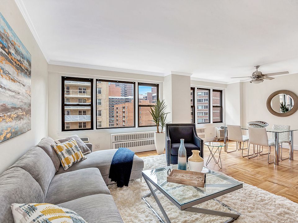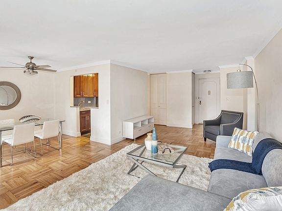 Move right into this spacious and sunny, updated one-bedroom co-op in a full-service Kips Bay building. Currently configured as a bright and airy one-bedroom, this expansive floor plan can easily accommodate the addition of a second bedroom, as seen in many other G-line units. Filled with open-sky views and beautiful upgrades, this approximately 850-square-feet home features fresh paint, tall ceilings and hardwood floors throughout. The sprawling living area provides ample space for seating, dining and home office areas, and three extra-large closets provided excellent closet space. Enjoy a wonderful galley kitchen were abundant cabinetry and chic blue tile backsplashes surround stainless steel appliances, or take in the sleek, modern bathroom featuring floor-to-ceiling tile, new fixtures and a large rain shower/tub. Rest easy in the king-size master bedroom, where you'll find two more roomy closets and fantastic light and views from windows facing south and east. Tracy Towers is a postwar cooperative where residents enjoy full-time doorman service, live-in superintendent, central laundry, a storage room and roof deck. Liberal board policies permit pets, pieds-à-terre, subletting, co-purchasing and parents buying for children. This Kips Bay home enjoys immediate proximity to NoMad, the Flatiron District, Chelsea, Midtown and Gramercy. The Kips Bay AMC theater, Trader Joe's and Fairway are nearby, and the stunning outdoor space of Madison Square, Union Square and Stuyvesant Square parks is just minutes away. Transportation is excellent with 6, N/R/W and L trains within easy reach.
