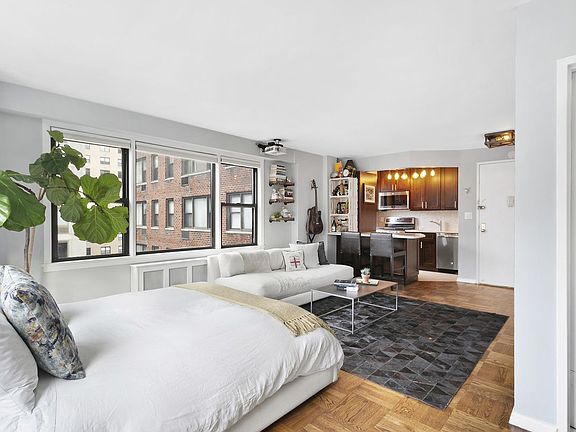 Recently renovated alcove studio in Kips Bay. Walk into your new home and immediately take in views and sunlight in this charming and efficient corner unit apartment. The kitchen has been tastefully renovated with an open concept ideal for entertaining and outfitted with top of the line GE Profile appliances including a dishwasher. While this serene space is large enough for separate living, dining and sleeping areas, the current owner uses the alcove as a zen space perfect for getting away from the rumble and speed of the city. Additionally they created great storage by adding a second closet with a built in home desk and workspace. The bathroom has been beautifully redesigned keeping with the allure and charm of the rest of the home. 245 E 24th Street offers a full time doorman, bike and storage rooms, laundry in the building and a beautiful landscaped rooftop deck with views of the Empire State Building and private garden beds for residents. Conveniently located near Madison Square Park, Trader Joe's, Fairway Market, AMC and the 4,5,6 lines, you will find no shortage of attractions, transportation and convenience while living at Tracy Towers. Pied-a-terres, co-purchasing, parents buying for children, subletting and pets are all permitted (pending co-op board approval).