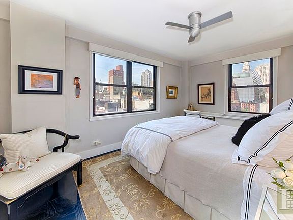Contract Signed. Bright and Beautiful One Bedroom Home Beautiful and in immaculate move-in condition, Apt. 10G is bright all day long, with south-facing windows from front to back with open city and landmark views, plus two west-facing windows for late afternoon and early evening illumination. This stunning home has been renovated throughout and has wonderful storage. The separate, windowed kitchen is lovely and includes stainless steel appliances, an abundance of cupboards and a breakfast nook by the window with partial WTC views, perfect for a morning cup of coffee. It can also be opened to the spacious livingroom with Con Ed Tower views, if you chose to do so. The corner bedroom has two sun-filled exposures, and does not share a wall with any other apartment and features tremendous Empire State Building views, so gorgeous at night. There is also a dining area, large entry closet and windowed bath. The HVAC units, for both AC and heat, are extremely economical and high functioning. Spruce Ridge is a pristine, well-managed and friendly 24HR D/M buildings with incredible financials and low maintenance. Situated on a great block, between 2nd and 3rd Avenues, there is a beautiful roof deck to enjoy with jaw-dropping landmark views, as well as a large, card-operated laundry room, a bicycle room and storage. Pet friendly! Sorry, no co-purchasing, pied a tieres or guarantors. Bring your sunglasses and come see for yourself this great home.