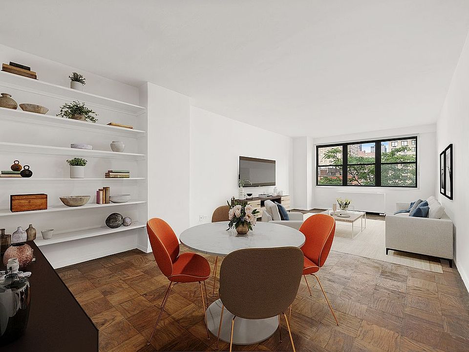 NO BOARD INTERVIEW/APPROVAL! Offered at an incredible value! Open sky, beautiful treetops, and Empire State Building views welcome you into this spacious and well laid out one bedroom home. Bring your architect and completely customize this light-filled apartment for an unmatchable price at the intersection of Gramercy and Kips Bay with every convenience at your fingertips. At the entrance sits an enormous walk-in closet with a secondary closet that can be reimagined as a large pantry, just outside of the separate galley kitchen. The living area is gracious enough to have a dedicated dining room equipped with built in shelving in addition to a standard entertainment area. The bedroom can accommodate a king-sized bedroom set plus a bonus area and features a wall of floor-to-ceiling closets, with an additional hall closet just outside of the adjacent bathroom. Built in 1964 and converted to cooperative in 1984, Spruce Ridge is a full-service building offering 24-hour doorman, common laundry room, bike room, package room, and a maturely planted roof deck showcasing panoramic city and river views. On-site storage and parking garage are accessed via waiting list and pets are welcome. Some photos are virutally staged.
