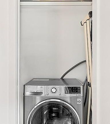 The spacious living room easily accommodates both lounge and dining areas and is anchored by hardwood floors and a beautifully scaled eastern-facing window that welcomes natural light all day. The windowed kitchen features full-size stainless steel appliances and solid wood cabinetry. The oversized bedroom enjoys two exposures, custom built-ins, and ample closet space. A crisp, recently renovated bathroom includes hexagonal tile, white subway tile, matte black fixtures, and a deep soaking tub. The in-unit LG washer/dryer is discreetly housed in a hallway closet for ultimate convenience.