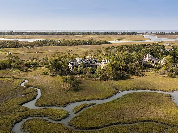 The well sited home embraces its pristine setting with double and triple-height, mahogany-clad windows that frame marsh and river views from nearly every room. Warm and comfortable living spaces, generous outdoor living areas, and spacious bedrooms make this an ideal home for hosting friends and family. A private dock provides direct access to water-based adventures just beyond your door.