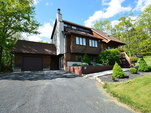 Fall in love with this Contemporary 3 bedroom/2.5 bath home with lovely sky light vaulted ceilings located in the woodland paradise of Monroe County. Kitchen has pantry space, center island & dining area with double doors leading to cozy den/playroom. Spacious family room with fireplace, living/dining room, laundry unit & half bath complete first floor. Walk upstairs to master bedroom w/ walk-in closet. There are 2 additional bedrooms, one of them has ladder leading to loft/lounge area. Full bathroom has stand up shower & jacuzzi tub. Unfinished walk-out basement w/bath. Enjoy summer BBQ's on an open yard with large deck & small shed. 1.5 attached garage & driveway provides ample parking. Minutes away from major highways, shopping & Pocono Mountain attractions. Call for showing today!