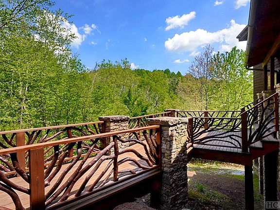Located on over six acres in the picturesque Highland Gap community of Scaly Mountain, this unique custom home offers gorgeous long range, layered mountain views from almost every room. No expense was spared in the construction or upkeep of this spacious retreat, which can easily accommodate the entire family. Features include master bedroom suites on each level, three stacked stone fireplaces and a beautiful chef's kitchen, along with a large family room with mini-kitchen, home office and laundry/mud room. The open decking and screened porch with hot tub offer the best in outdoor living. Take time to enjoy the good life!