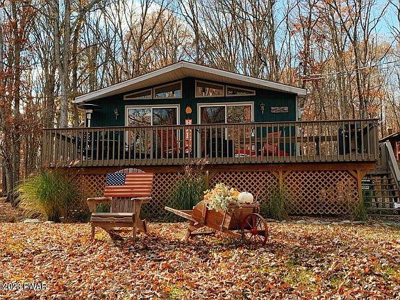 Fawn Lake Forest Chalet featuring seasonal lake views of Fawn Lake! This adorable chalet features 3 bedrooms, 2 full baths, partially finished lower level and an open concept floor plan with a wraparound deck and spacious back yard for outdoor entertainment! A free-standing pellet stove is the focal point of the open concept living area and features an abundance of natural light with beautiful brand new hardwood floors throughout! A paved driveway and oversized shed complete this property. Fawn Lake is a full amenity community and features Fawn Lake for all your non- motor boating activities and access to Westcolang Lake for all your motor both activities. Enjoy the indoor or outdoor pool complexes along with a large array of activities for all ages. WASD and a must see property!