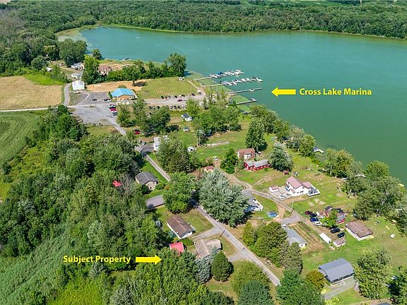 This adorable Cross Lake cottage offers pleasant lake views and sits just 800 feet from Cross Lake Marina—perfect for boating enthusiasts with no flood insurance required! This remodeled home features a heated sunroom, deck, and open kitchen-family room combination. Extensive updates over the past decade include new roofing, siding, windows, doors, a modern kitchen with updated appliances, hardwood floors, renovated bathroom, master bedroom, plus a newer split unit HVAC system, washer, dryer, and quality flooring throughout. The heated garage includes a finished second-floor space perfect for a recreation room or office, adding both comfort and functionality. Cross Lake connects to the historic Erie Canal system, offering access to both the Great Lakes and the Atlantic Ocean for adventurous boaters. Whether you're seeking a summer vacation retreat or year-round residence, this quiet lakeside property provides the ideal low-maintenance escape for relaxation in a peaceful setting—perfect for unwinding while enjoying lovely water views.