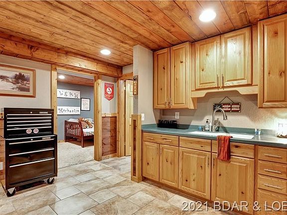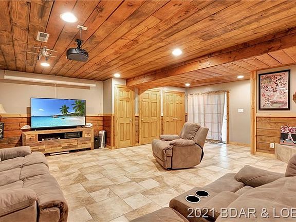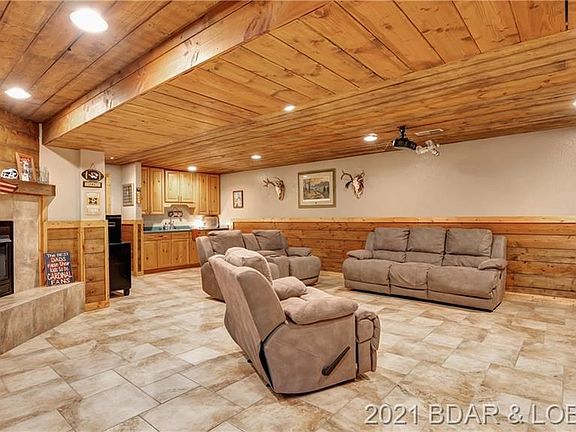 PREVIOUS buyer financing fell through! Private setting home just outside of Camdenton on 3.5 acres. This 4bed / 3bath property has been very well taken care of! Approaching the property you'll notice the circle driveway, fresh rock landscaping, covered front porch & privacy w/ trees all around. Entering you'll notice the vaulted ceilings, wood floors, Corian counter tops in kitchen, open concept & sunroom that overlooks the 3.5 acres out back. 3beds/2baths on the main level and 1bed/1bath downstairs. Downstairs also consists of a large family room with gas fireplace, knotty wood plank ceiling, wet-bar & walkout lower level to covered patio and storage room (concrete floor). Family room also includes a projector w/ screen! Seller is also leaving swing set & trampoline if desired AND just put in a nice fire pit area for entertaining & roasting s'mores! Located just outside of town only a few miles but you feel like your out in the country. Acreage main use is either privacy or hunting.