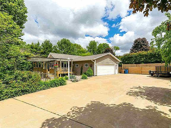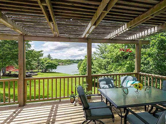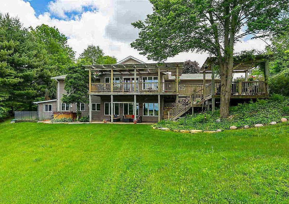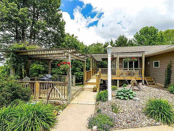 Lake front property on two lots (1.35 acres) on Fyre Lake with the most amazing sunsets and expansive views of Fyre Lake National Golf Course across the lake. The main living area has Brazilian Cherry hardwood floors. Open concept living room, dining room and kitchen with island and Quartz counter tops. Very spacious with views of the lake via Andersen windows throughout. The walkout basement is finished with natural gas connection for fireplace or secondary kitchen if desired. Exposed aggregate patio installed last year along with newly landscaped limestone retaining wall and borders. The deck wraps the house with a gazebo for entertaining or walk down to fire pit and roast hot dogs. There is a massive amount of storage. Plenty of room for playing. Hardy Board cement siding is fire resistant. New roof and 6 inch gutters 3/2019 year. This home is heated with gas not LP. The Multi-Flow septic is maintained twice a year. Second lot would be perfect to build another garage for storage/woodworking/or hot rods. Great house to consider for multi-family recreation home.