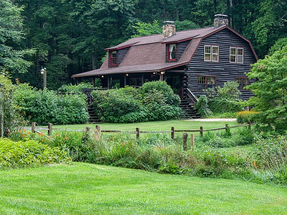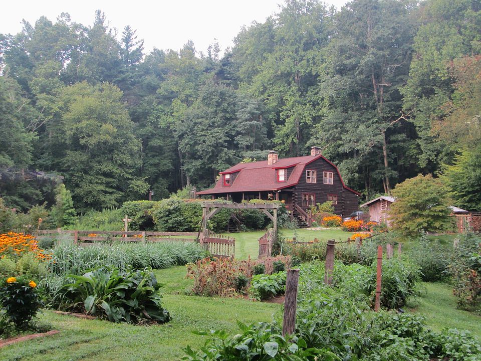 Charming log cabin with 3 car garage, nestled in the Blue Ridge Mountains on 7.4 Acres! This is a hard to find combo - a private and safe setting, low traffic and lots of room to run, yet lots of level usable land with woods and hills surrounded by the Appalachians. Pasture for livestock, large yards, and lots of garden space make this an ideal farmette. The tillable soil is in excellent condition from 25 years of organic gardening. There are 24 blueberry bushes, concord grapes, red raspberries, and 3 apple trees. There are 5 outbuildings - a chicken house, garden shed, wood and tool shed, playhouse, and a rustic cabin. 3 miles from Little Switzerland, and the Blue Ridge Parkway, and 15 minutes from shopping and gas. One hr to Asheville or Boone, and half hr to Marion or Burnsville. A lovely mountain home or an excellent options for a vacation rental or Airbnb using the whole house or just the lower level studio apartment with its own bath and egress. No property restrictions or HOA