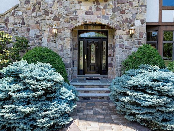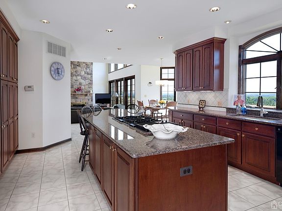 This custom-built Tudor home offers the grandest of views and is filled with natural light, thanks to carefully placed windows and doors that maximize the breathtaking vistas from every angle. Its solid stone masonry was hand-selected by this home's one and only owner, who meticulously designed and built it, choosing the location specifically for its unparalleled views. Upon entering, you're immediately greeted by large formal rooms. The living room includes one of two fireplaces. Adjacent to the living room, a library/home office offers a serene workspace with incredible vistas, making it an inspiring place to work or read. The dining room featuresfour long casement windows that flood the room with light. The kitchen's heart is a long granite pull-up island with a cooktop with two downdrafts. There are also dual wall ovens and a paneled built-in refrigerator. Between the kitchen and dining room, a spacious butler's pantry serves as an ideal buffet station due to its well-thought wrap-around granite counter and glass-front upper cabinets. The family room, with a 2-story fieldstone fireplace, opens to a low-maintenance Trex deck with a stairway to a shaded patio below. A full bathroom rounds out the first floor. Two sets of stairs lead to the bedrooms. The main suite features a separate room that could serve as a home office or workout space, and a large en suite bath that offers more of those magnificent views. Three additional bedrooms share a well-appointed hall bath. The full walk-out basement, with its high ceilings and a wood-burning stove, is already plumbed for finishing and has its own HVAC zone. Bring your plans!