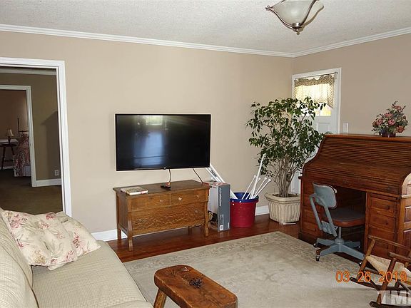 Well maintained home, hardwood floors, new vinyl kitchen and bathroom floor, spacious family/dining room with laminate flooring, masonry fireplace w/wood stove insert; living room, kitchen equipped with range, hood & dishwasher: large laundry room; 2 bedrooms, remodeled bath with shower, vanity, sink & flooring; bonus room with closets, spacious side deck, paved driveway to home and to a detached garage/storage. Well, Home Warranty 2-10; convenient to US #1 Bypass and I-85.