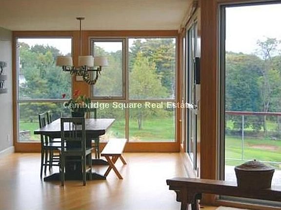 This home offers floor to ceiling east-facing windows showcasing panoramic views of the Boston city skyline, Fresh Pond Reservoir and golf course on all 4 levels & 3 decks. Expansive open living w/ high ceilings, wood burning fireplace & bamboo floors. Ideal for entertaining inside and out.}