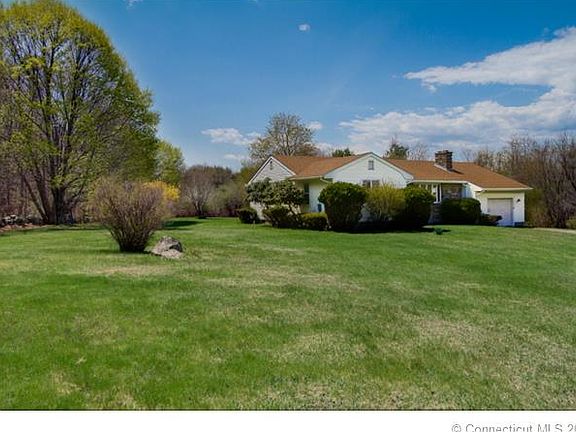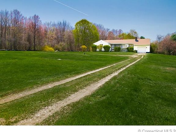 Rural Putnam location with 26 acres, this stonewall lined property has lovely views no matter where you are in the home! One level living, ample sized living room with stone fireplace with an insert and adjacent eat-in kitchen. One car attached garage with door opener. The property was a working farm years ago with stone walled pastures. They have not been attended to for years and have become over grown but could be brought back for agricultural use, micro-farming or for the horse lover! The potential is here for a wonderful property. Semi finished basement with dry bar and finished walls. 629 feet of road frontage, barn needs work, Great commuter location only 3 minutes from I-395. Brand new roof, Central vac, newer furnace with 3 zones, 330 gal oil tank, First floor laundry, newer bay window in living room, pulldown attic stairs, front and back garage doors.