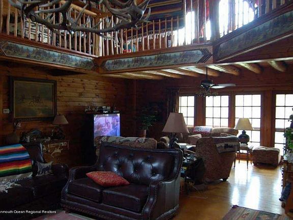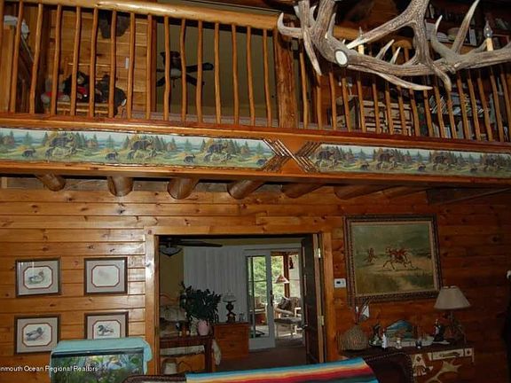 Are you looking for your own Wilderness Get-Away? An oversized cabin in the woods - This is the Home for You! Set back off a private road that leads to a beautiful lake is this spectacular 3000+sq ft. lodge. Inside you will see hand crafted custom wood working from the detailed vaulted log ceiling beams to the cabinetry and walls. Each room makes you feel like you're on vacation. Home has 4 bdrms, 2 kitchens, one located inside a closed in patio area, a 2nd story loft with a library that overlooks the family room w/ custom made chandelier. 2 master bedrooms. Enjoy the outside covered open air porch that leads out to a wrap around for total viewing of the pond and stream. This home has so much to offer, must be seen to be appreciated. TLC is needed to bring the greatness back to this home