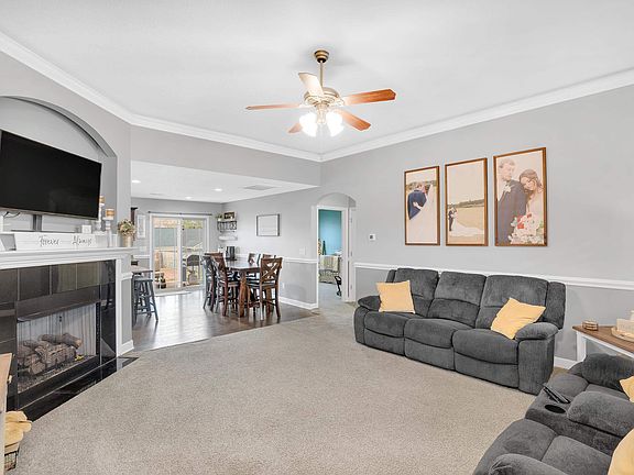 - Ceiling Fan(s), Tray Ceiling(s), Attic Stairs Pulldown, Fireplace, Solid Surface Counters, Open Floorplan