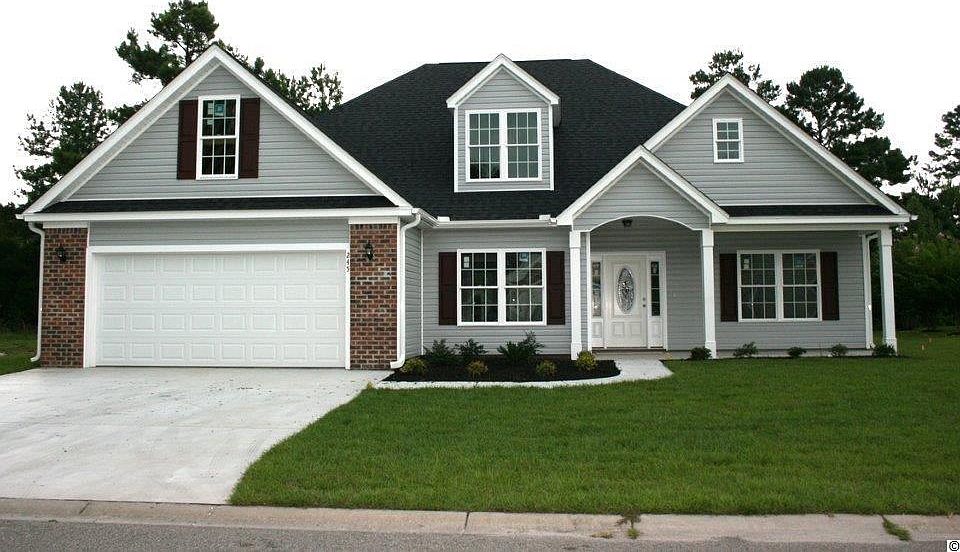 NEW HOME! Move-In Ready! This Crape Myrtle has a relaxing 20 ft long front porch, formal entry foyer, large dining room with tray ceiling, and a very spacious and open living area with vaulted ceiling, a wall of windows and glass doors overlooking the 22 x 10 rear patio and back yard, adjacent to the 11 x 14 porch. Hardwood floors in dining room, foyer, living room, and halls, tile in kitchen, laundry room and bathrooms. Well equipped kitchen has solid wood cabinets with crown molding, stainless steel appliances, granite countertops, pantry and a breakfast bar open to the living room. Private Master bedroom retreat with tray ceiling, huge walk in closet, double sinks, garden tub plus separate walk in shower. Oversized fully finished 22 x 22 garage with door opener, smooth ceilings, 30 yr architectural roof shingles, sodded yard, gutters, irrigation system and more. Beautiful and private backyard overlooks a tranquil lake. Builder was voted 2014 Best NEW HOME BUILDER! Established community with Owners pool, clubhouse, walking/bike paths, mature trees and landscaping. Convenient to the beach and to the historic river town of Conway. Video is for illustrative purposes only and is of similar home previously built. Square footage is approximate and not guaranteed. Buyer is responsible for verification