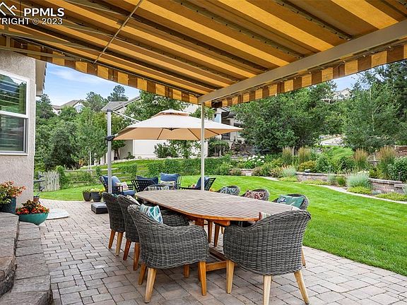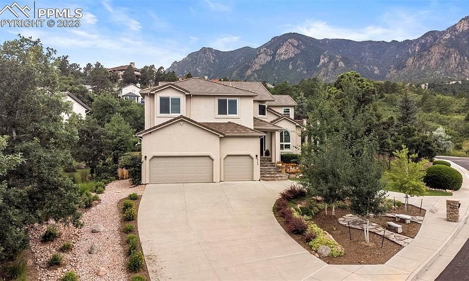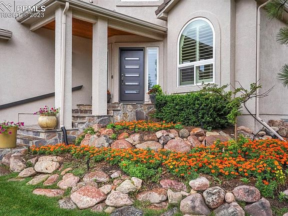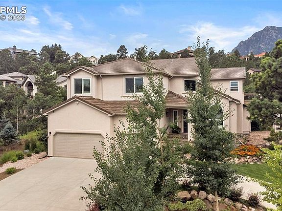This Broadmoor Hills Park home is situated on a beautifully landscaped corner lot with outstanding views of Cheyenne Mountain from the rear and expansive front range, G of G and city views from the front. The large kitchen with massive island is at the heart of this Open Floorplan. Kitchen has granite counters & backsplash, and includes new appliances: Wolf® gas cooktop, Wolf® M series wall oven, Wolf® microwave/convection oven, Kitchen Aid® refrigerator, Asko® quiet dishwasher and built-in Sub Zero® wine cooler. Enjoy your morning coffee and the views from the upper maintenance free deck of the spacious Primary bedroom with massive custom walk-in closet. The recently renovated en-suite bath includes oversized shower, free standing soaking tub, and separate vanities. Lighting has been upgraded throughout the home. Plantation shutters throughout. New furnace! New A/C! Three (3) gas fireplaces – one on each level. Newer 50 year tile roof! Lovely perennial flower gardens. Private and expansive paver patio with awning. Great basement “workshop” area and massive storage area. The home is turn-key and virtually every room, surface, and system has been updated with high end materials and finishes. The 3 bay garage has a shop heater, is completely finished and insulated. This home may very well be everything you are looking for.