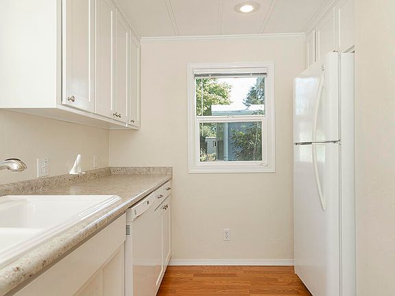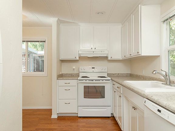 Welcome to gracious living in this updated, well-maintained Fleetwood manufactured home, nestled close to town, in an exclusive 55+ community. This 784 sf home features a cozy floor plan that is fully updated with 2 Bedrooms and 1 Bath. This home is neat as a pin and all you have to do is move in! Outside you'll find a covered parking area, a beautiful lawn, and a very nice storage shed. Space rent is only $665! Come enjoy life in this charming community in the heart of the Rogue Valley! Call for your tour today!