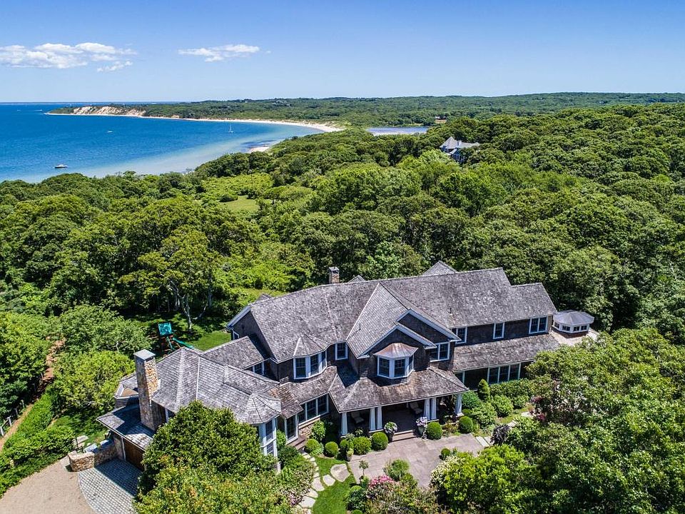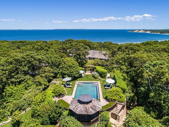 Paul's Point, one of the most prestigious shorelines on Martha's Vineyard, known for its sandy shores, emerald waters and remarkable privacy, is home to this breathtaking waterfront estate. Set on nearly 15 acres, the compound offers unrivaled privacy, dramatic views, hundreds of feet sandy beach and multiple homes. 245 John Cottle Road - The main residence is a three level, 10,000sf masterpiece designed by Peter Breeze. Upon entry, stunning water views greet you and draw you into the two story great room lined with windows that showcase the natural backdrop of the sparkling ocean and dramatic north shore cliffs. The home is in impeccable condition and boasts room after room of custom details, luxury finishes and rich mahogany woodwork that is perfectly balanced with a soothing color