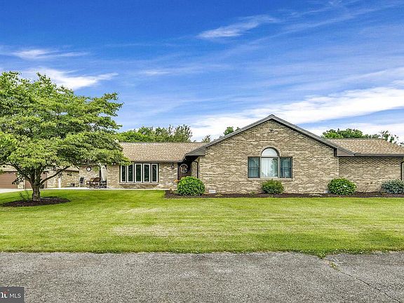 All Brick Rancher located on a 5.66 acres in a private setting!!! Features Include: a 28 X 48 Pole Building, and a 26 X 36 four car garage, Shed, Kennel, Pool, and a great level lot. Hardwood and ceramic tile floors, Huge master suite with a cathedral ceiling and a full bathroom with a soaking tub and a stand up shower. Access to the covered deck and above ground pool. 1st floor laundry room, mudroom, dining room with sliders to a side patio. Several patio areas. Full basement. Natural Gas has been ran to the home. Seller is installing a new gas furnace and CAC in the basement. The second unit is on the 1st floor. Seller has been heating the home with coal for the last couple of years. Coal stove is included. Great location, Convenient to I-83 and Rt-30, yet private and secluded. Home needs a few finishing touches to make it your own.