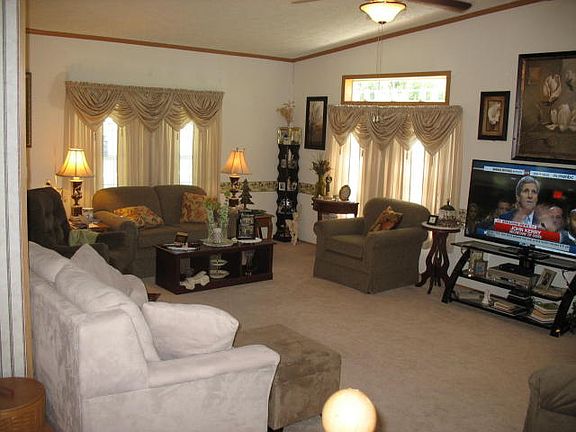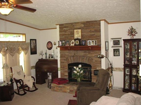 This spacious and well maintained manufactured home is 12 years old. The 28 foot long living room features a stone fireplace with immediate access from kitchen and dining room. 3 bedrooms, 2 full bathrooms, and convenient laundry room complete the room count. Amenities include covered front porch, 2 car detached garage, and 1 acre.