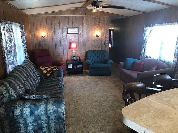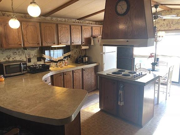 Affordable Lake Living! LOOKING FOR A GREAT KITCHEN? THIS ONE HAS IT! 50+ Community offers lake front living. Measurements on Trailer are approximate. (14x70) It has a huge Kitchen and a very large bathroom! Two Screened in porches to enjoy the views! Open Floor Plan, tons of cabinets and completely furnished! Lot Rent $475.00 includes pool, lake access, lawn, water, sewer and trash! New amenities to come are cabanas, playground, fenced in dog area and more! Great place for a Second home or to Retire to. Boat slips available to rent or you can rent a boat! Storage Shed included. Good clean home! Live the life style you have been dreaming of. Measurements are approximate.