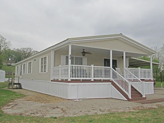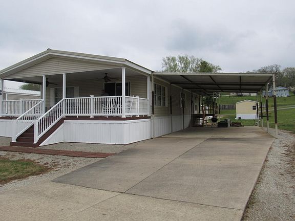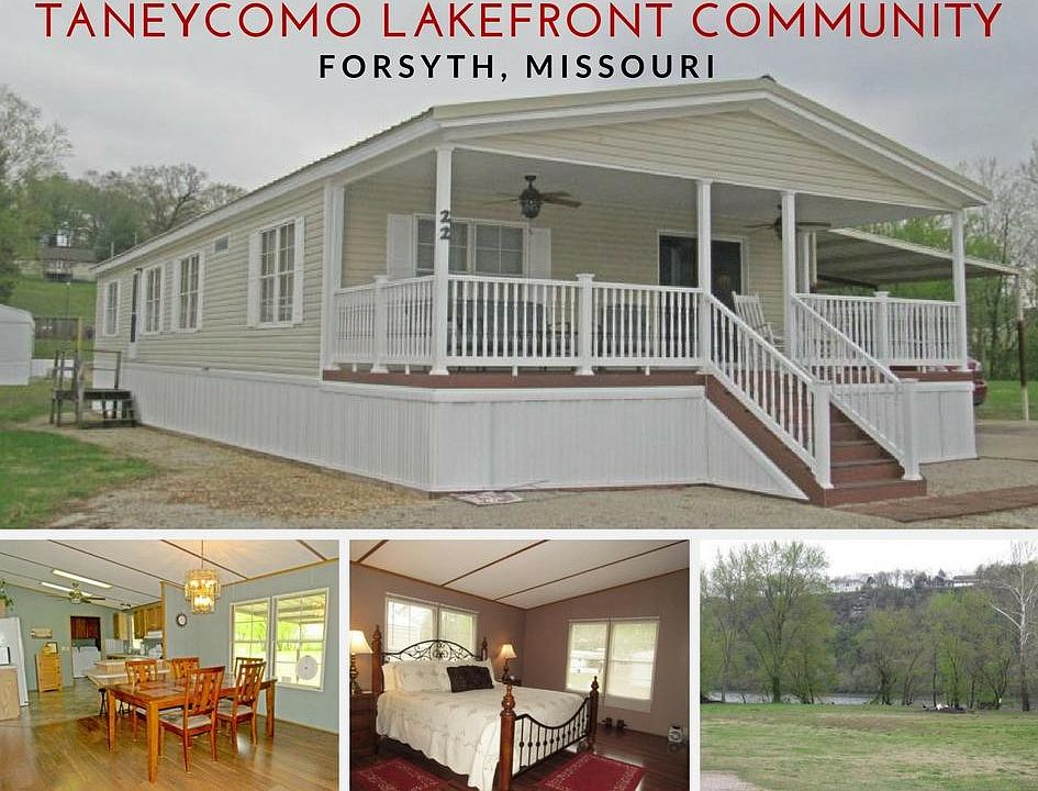 Wow! Live the dream in this Taneycomo Lake Front Community! This immaculate home is a step above the rest in the community. Homes boast 3 bedrooms, 2 full bathrooms complete with a master suite with a spacious walk-in closet, 2 separate living areas, huge open kitchen with all appliances included, full size laundry, 4 car covered carport with additional parking spaces, tasteful paint colors throughout, beautiful laminate wood floors, 2 storage sheds a 280 sqft covered porch to relax and soak in the serene views of the Ozark Mtns and Lake Taneycomo! Situated at the end of the road no neighbors to your right! Ozark Beach is a 50+ age community with amenities including pool, lake access, boat slip & boat rentals. Additional amenities coming soon! A Must See Call today for your private showing