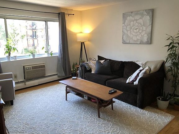 FOR RENT Top floor (4th floor walk up) condo near Longwood Medical area, Coolidge Corner theater, Wholefoods, train (Green line B&C lines), Boston University, Boston College, Coolidge Corner, St Elizabeth's Hospital, Mass turnpike + Allston Village with many restaurants/shops. Two generously-sized bedrooms + one bath. Wood floors throughout + eat-in kitchen. In-unit washer/dryer Sorry no elevator, no smoking and no pets. No undergraduate students or co-signers. Bike room. Swimming pool for your summer enjoyment. One rental parking available (space #43) +$175/month extra. Heat and hot water included. Amazing walk score 90. Available September 1.