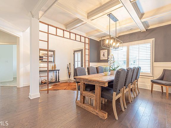 Beautiful Modern Farmhouse charm with cedar trim, half-acre lot, fully fenced with garden area. Master on the main, split bedroom plan with private guest suite on first floor and 3 bedrooms upstairs. Lovely master suite with double sinks, separate tub and shower, and walk-in closet. Two additional baths are roomy with granite counters with tile floors. This home is full of light, with two story foyer and open concept great room/kitchen. Gourmet kitchen, natural gas range, 4 seat peninsula and an island, with loads of counter space, granite counters throughout, and SS appliances. Breakfast nook and large walk-in pantry. The dining room is spacious and separate with custom library paneling, coffer ceiling, and decorative wood accents. Great room recently added 2 additional windows flanking the gorgeous gas log stone fireplace. Hardwood flooring first floor. All windows covered with custom plantations shutters or cordless roman shades. This home has over $25,000 in builder and seller upgrades. Plenty of room for home office or home school. This is the one!