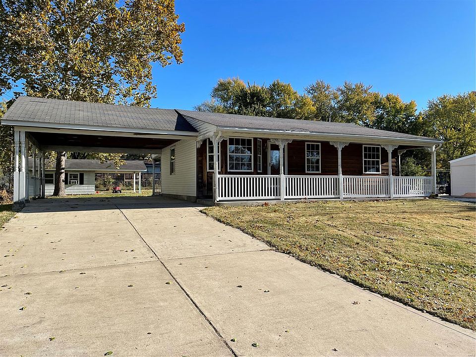 Spacious Ranch with 3 bedrooms & 1 1/2 baths. Lots of hardwood floors, most windows are updated. Large eat in kitchen with French doors going out to the large covered concrete patio. Level yard, large shed in the backyard with electric and another covered parking space. Master bedroom has it's own 1/2 bath, hall bath boasts a full tub.