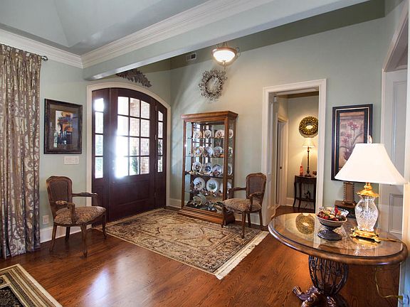 This dropdead gorgeous golf front home is located on the 15th fairway of Mid South Golf Club. This is one of the most beautiful lots on the course. Built by Blackman Builders, the home has wonderful space both indoors and out and offers many upscale features such as heavy crown molding and trim, window walls to maximize the views, wood flooring throughout the living areas and custom lighting and hardware in all rooms. The floorplan is bright and open and features a separate living room with beautiful built-ins and French doors opening to a large covered patio, a formal dining room and a gourmet kitchen with tons of custom cabinets, granite countertops and stainless steel appliances. The kitchen is open to a large family room with loads of built-ins. The kitchen and family room