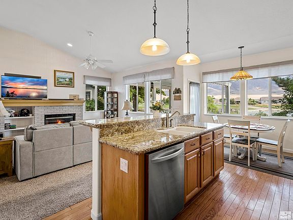 Motivated sellers!! Prepare to be amazed with this beautiful home located in the Dayton Valley Golf Course gated community. This home is situated right on the 8th hole and an amazing pond with spectacular views of the sunrise to the east and sunsets to the west, all right from your oasis of a backyard., You are sure to enjoy the large open kitchen with granite counter tops, a breakfast bar, walk-in pantry, and a dining area that looks right out to the backyard, and golf course. This is such an open concept floorplan you’ll get to enjoy it all. The master bath has double sinks, standing shower, large closet, and a garden tub. The backyard features a beautiful paved covered patio area, it a wonderful lawn area, mature trees, and plants…. but it’s the views that you will notice most from any angle in this backyard This home has recently had the exterior painted, has a new stove, oven and range hood. You don’t want to miss this opportunity to live in a great gated community, right on the golf course…with a pond.