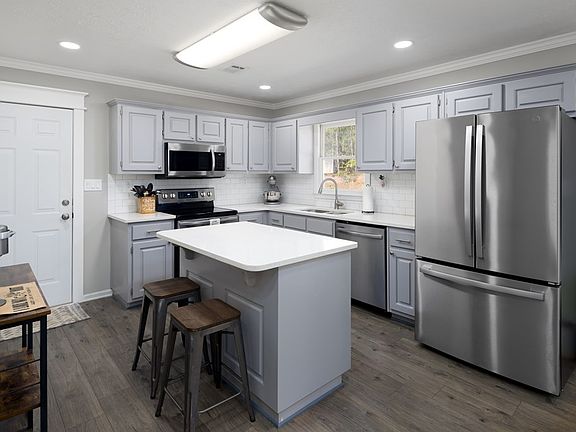 3 BD 2 BA 1 story home on 2.31 acres. Beautiful home remodeled in 2021 to include updated kitchen and bathrooms with Quartz counters. Kitchen has a pretty island and dining area with pantry. Oversized garage with workshop area. Covered front porch to enjoy nature. All bedrooms are great sizes. (3rd bedroom not shown in pictures.)