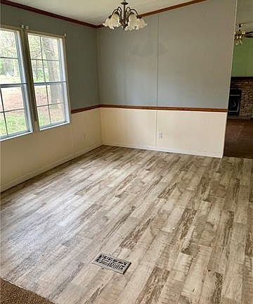 This spacious home sits on over 4 ACRES. Open floor plan, large kitchen island and breakfast area. Big deck on back is perfect for entertaining with above ground pool (needs some TLC). Community well is located on THIS property. All appliances and storage buildings convey.