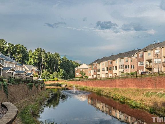 Beautiful end-unit townhome w/2-car car garage on a private lot w/view of community pond & fountain! Open floor plan w/spacious living areas gives this townhome a large single-family home feel! Stunning hardwood & tile floors (hardwoods in all bedrooms!). Huge Master w/large walk-in closet, dual vanities, garden tub & separate shower. Granite countertops, SS appliances & more! Community pool + a great NW Cary location close to shopping, restaurants, theater & just minutes to RDU, RTP & Umstead Park!
