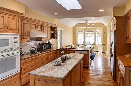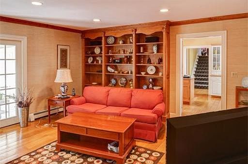 Enjoy a retreat like setting of this gorgeous 9 room Colonial situated on 1.7 acres of land, all the while being surrounded by other beautiful homes. Choose which fireplace to relax in front of in either the elegant formal living room, the cherry paneled library/office, or in the cozy den, replete with custom built-ins. The natural setting will surround you from the three-season room with views of the water garden. There is additional living space in the bonus room and the lower level play room.