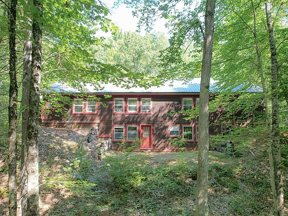 This meticulously built, exposed Post & Beam ranch with cathedral ceilings rests on 18 wooded acres bordered on two sides by town and Audubon conservation land. One lot line is a babbling brook. The natural wood beams throughout the home accentuate an open and fresh feel. The bright, airy kitchen with gas range and maple butcher block island is open to the breakfast nook and main living area, while dining and den/office areas maintain privacy. The first-level primary bedroom with en suite includes a large, recently-tiled walk-in dual-head shower and walk-in closet offering generous space to stretch and get ready for the day. The entire first-level wood floors were recently refinished. The front acres of this wooded parcel gently slope toward the rear, making the lower level bedrooms and spacious storage and workshop a walk-out to views of nature. Stained cedar clapboard exterior and metal roof match the New England environment. The 3-bay garage and main building are joined by a comfortable screened sitting area. This lovely home is set back approx. 200' from the road and enjoys the seclusion of being the last property on Lower Straw Road, a minute from the Concord town line, 25 miles to Boston-Manchester Regional Airport, a 3-minute drive to I-89 exit 3, and 8 miles to downtown Concord. Floor plans are digitally rendered; please conduct your own due diligence.