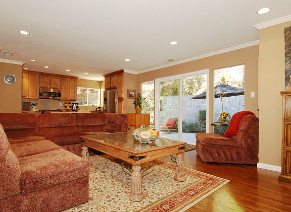 This charming character-filled home is a real winner! Warm and inviting, it features hardwood floors throughout, crown moldings, two gas fireplace with remote and fully remodeled baths. The open floor plan allows flexible living spaces and note the large windows overlooking the patio with stamped concrete patio and big side gate for additional parking. Show to your clients who just want to move in and enjoy!
