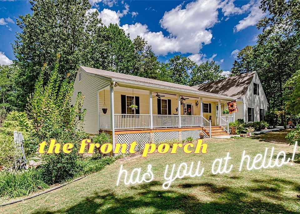 NEW PRICE ON THIS CHARMING STORYBOOK RANCHER ON 6+ ACRES! THE FULL FRONT PORCH HAS YOU AT HELLO! Don't let this one slip away.....cozy open floorplan that includes two beautiful woodburning fireplaces with gas logs, lots of outdoor living space with that full front porch, a deck, screened porch and a patio! Of course, there's that moment when you discover the bright, inviting and beautifully finished basement that could be that additional bedroom space (a WOW moment)....possibilities are endless! Don't forget to check out the very clever fencing system for pets and livestock! Located on a cul de sac for quiet country living that is minutes from shopping and restaurants! THREE BEDROOM SEPTIC SYSTEM.....documentation attached. All appliances, fireplaces, chimneys, flues, liners and detached shed convey as-is. Both fireplaces have gas logs but they are woodburning. Sellers never burned wood in the fireplaces so they look like new!